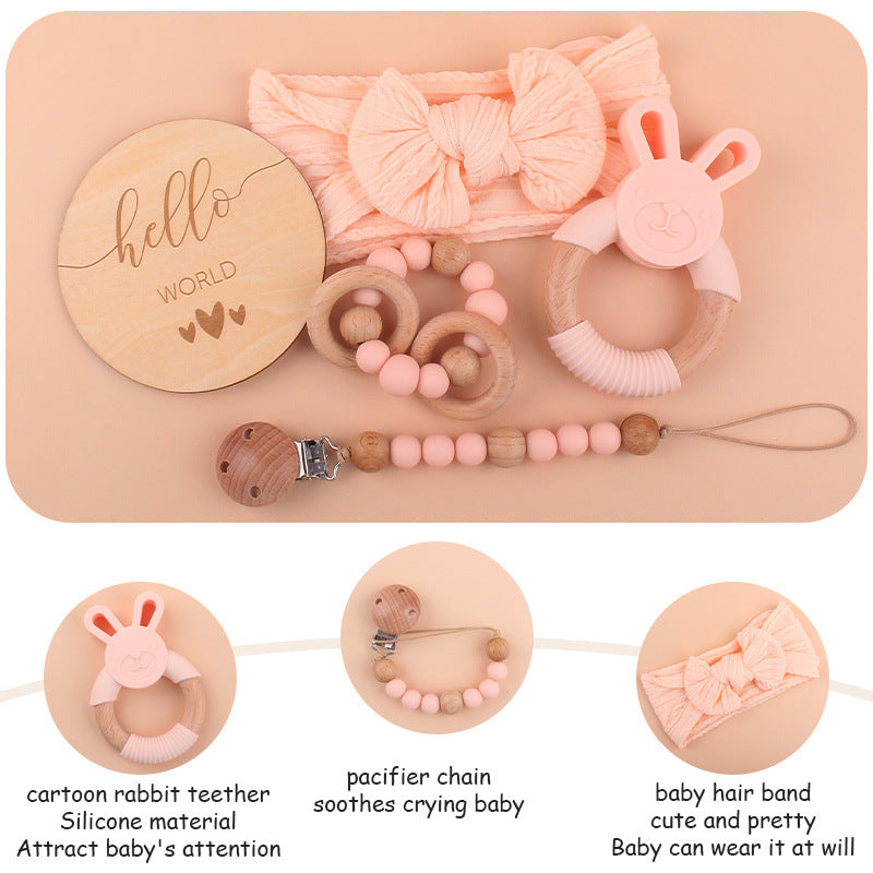 Baby Schnullerkette Set aus Silikon & Holz – 5-teiliges Geschenkset für Neugeborene (0–3 Jahre)