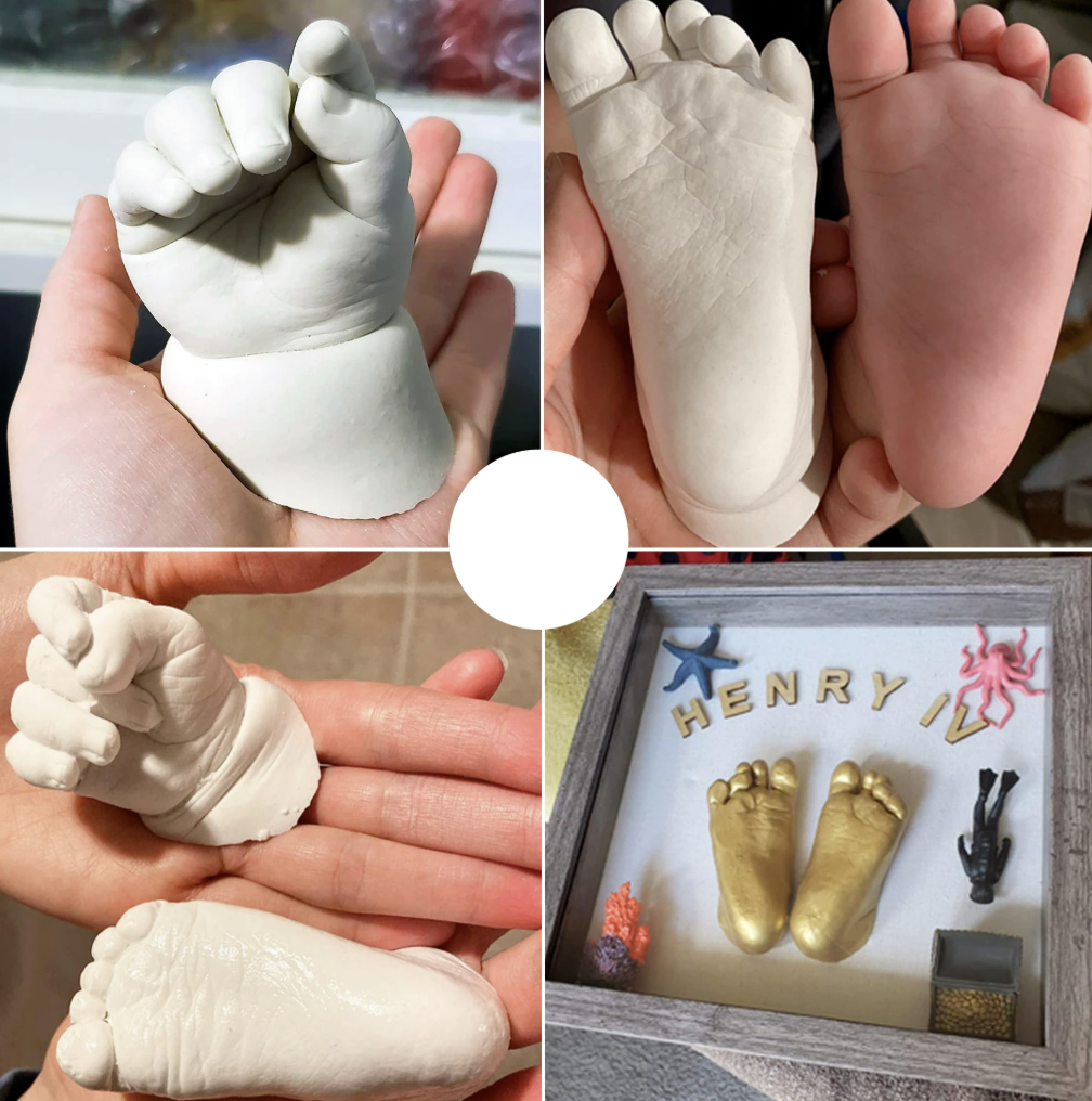 Das Abdruckset ist einfach zu Hause anzuwenden und benötigt keine Vorkenntnisse. Innerhalb kurzer Zeit entsteht eine bleibende Erinnerung an eine einzigartige Lebensphase.