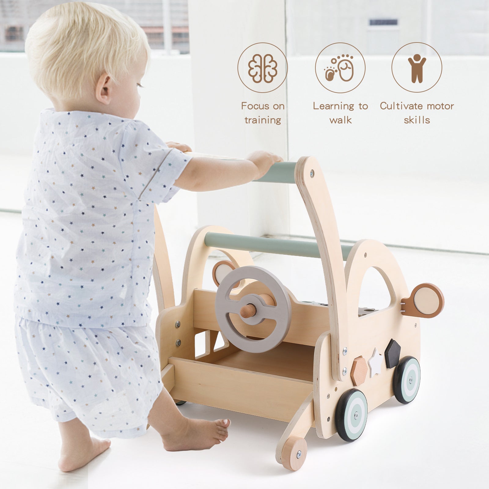 Holz Lauflernwagen für Babys – Pädagogischer Gehwagen mit Lernspiel