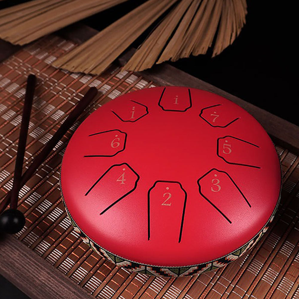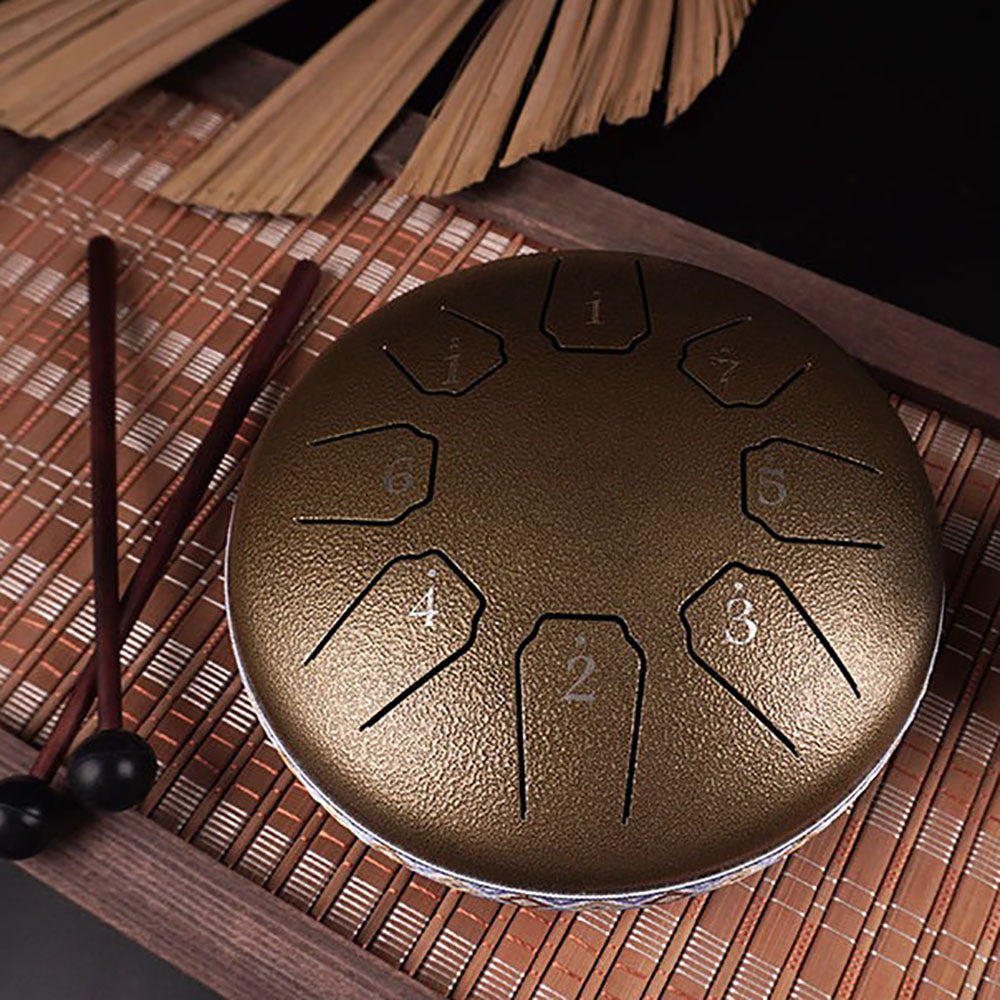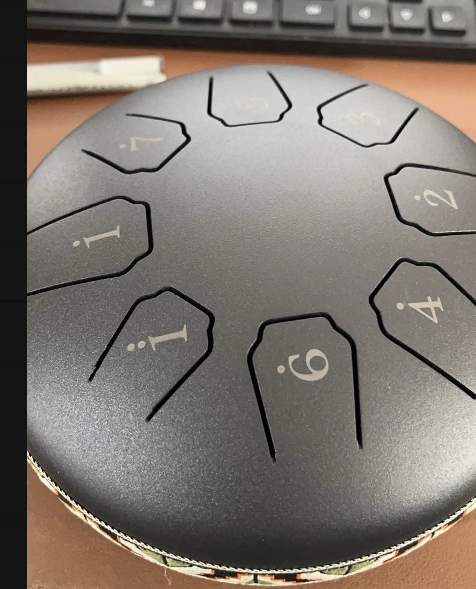 Diese kompakte Steel Tongue Drum aus hochwertigem Carbonstahl erzeugt klare, beruhigende Klangtöne und eignet sich ideal für Meditation, Yoga, Musikunterricht oder einfach zum Entspannen.